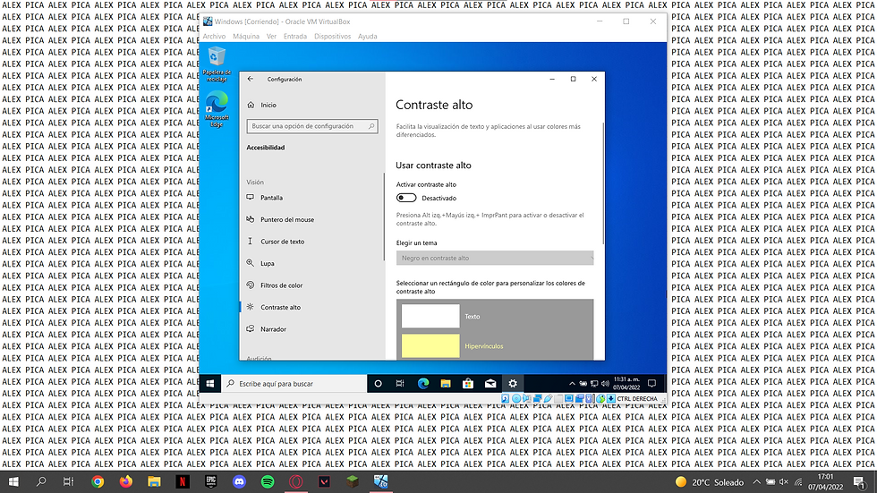 Aquesta part tambe es per gent amb problemes de vista i el que podem fer es pujar el contrast i elegir quin contrast posar.